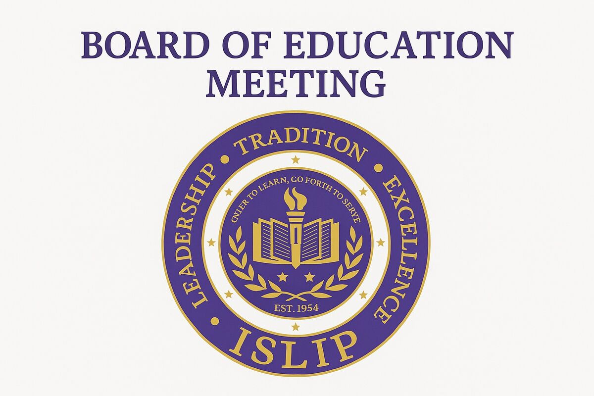 The Islip Board of Education will hold a public hearing and regular business meeting on Tuesday, January 13, 2026, beginning at 6:00 p.m. in Islip High School. It is anticipated that after opening ...