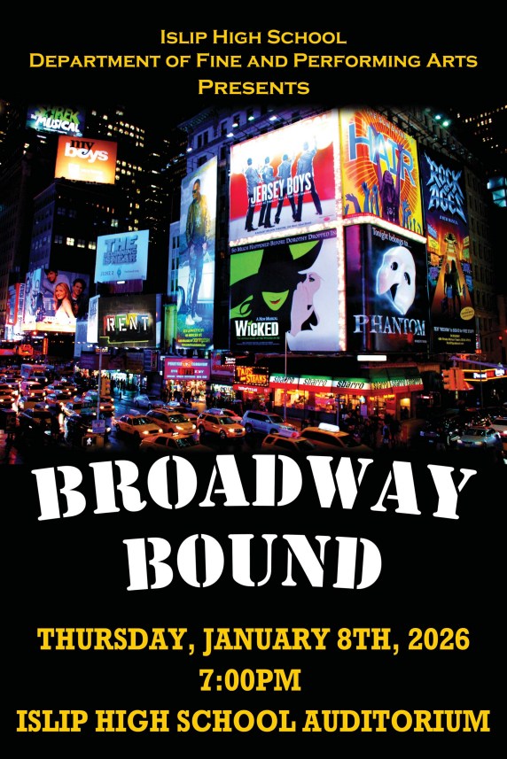 Islip High School's Department of Fine and Performing Arts is proud to present BROADWAY BOUND, an unforgettable evening of musical theater!Join us as our talented student performers bring to life i...